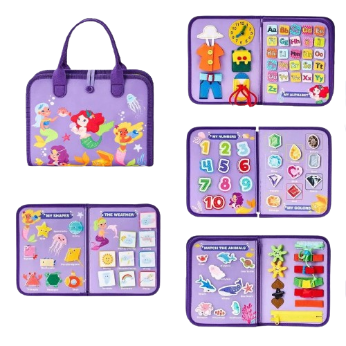 Copilul va experimenta cum sa utilizeze curelele, nasturii rucsacului, capsele portofelului, velcro si ai diverselor piese de imbracaminte, precum si a altor necesitati zilnice, cum sa inchida fermoarul, sa lege sireturiles si sa invete ceasul. De asemenea va invata sa recunoasca culorile, literele, cifrele si isi va dezvolta abilitatile motorii fine.