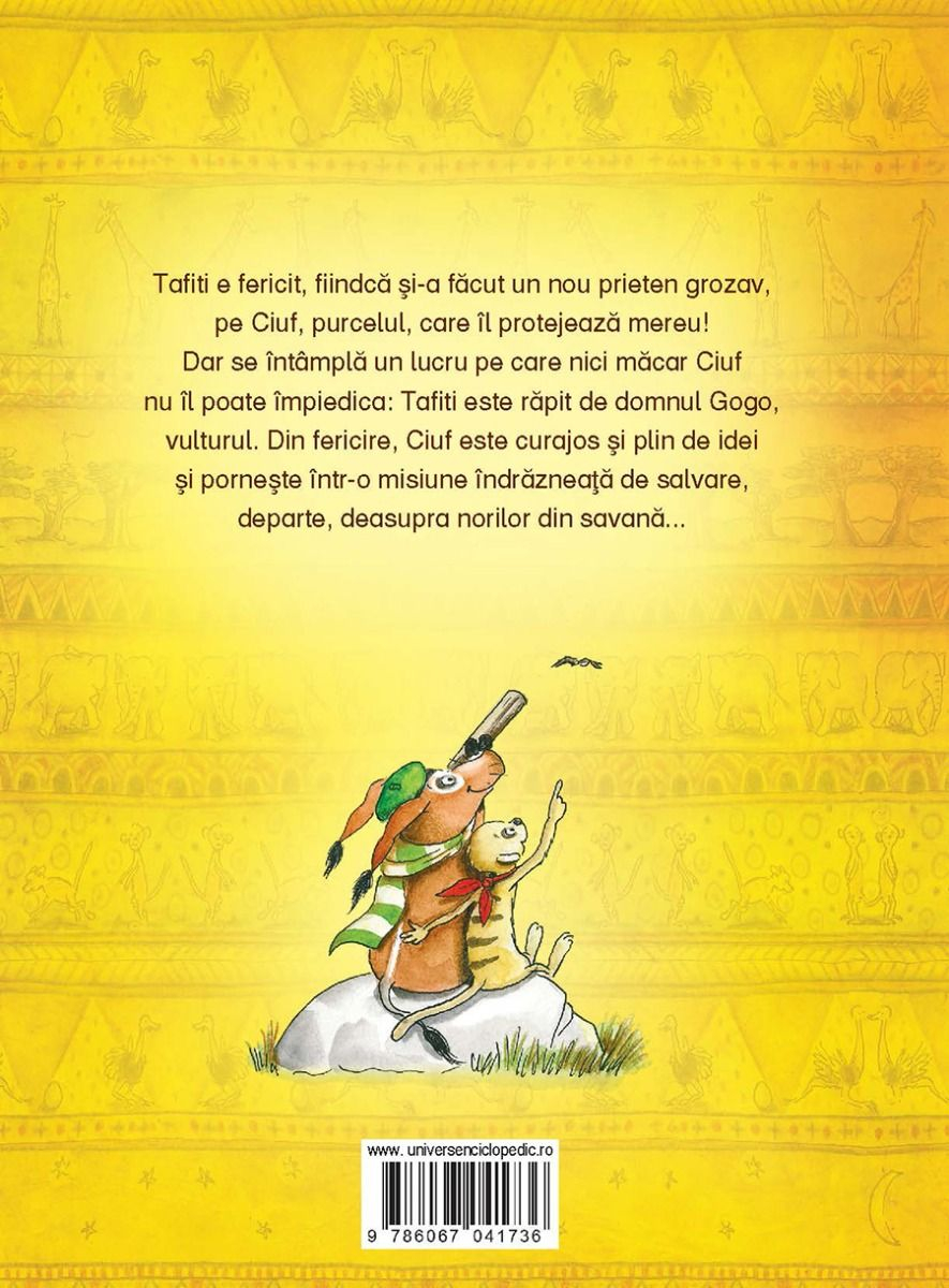 Tafiti e fericit, fiindcă și-a făcut un nou prieten grozav, pe Ciuf, care îl protejează mereu! Dar se întâmplă un lucru pe care nu îl poate împiedica nici măcar Ciuf: Tafiti este răpit de domnul Gogo, vulturul. Din fericire, Ciuf este curajos și plin de idei și pornește într-o misiune îndrăzneață de salvare, departe, deasupra norilor din savană...