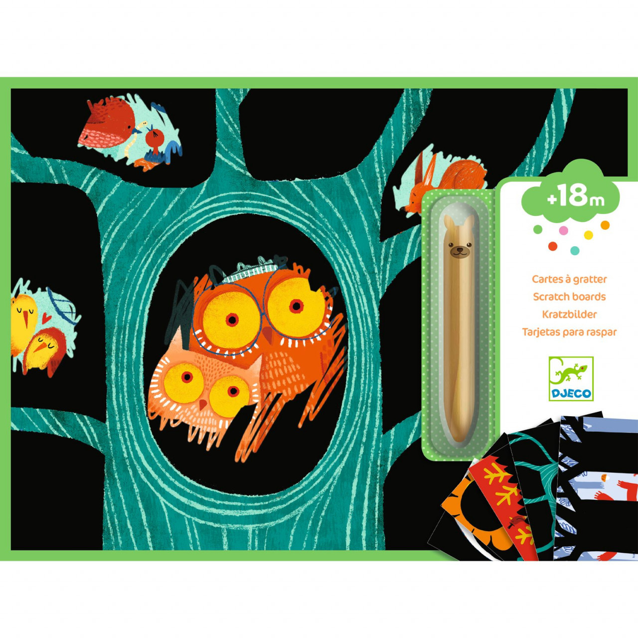 Cei mici au nevoie de un spațiu mai mare pentru a-și manifesta creativitatea, așa că iată 5 modele mari de răzuit cu tematică animale. Copiii se vor bucura răzuind planșele cu ajutorul celor 2 laturi ale instrumentului tip creion și descoperind surprizele care se află dedesubt. O activitate atrăgătoare și distractivă pentru micii artiști! Conținut: 5 modele de răzuit (21 x 28 cm), instrument din lemn tip creion cu vârfuri rotunjite și broșură cu instrucțiuni pas cu pas. Vârsta recomandată: +18 luni. Producător: Djeco, Franța