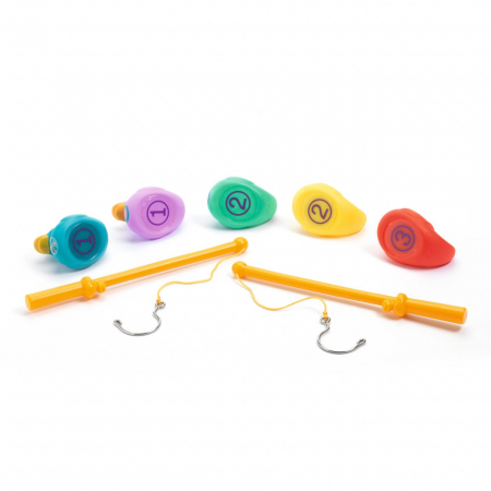Joc de indemanare Ratuste colorate Joc de pescuit cu 2 undițe și 5 rațe colorate. Pescarii în devenire se pot distra îmbunătățindu-și abilitățile de pescuit și chicotind mult! Rațele sunt numerotate, astfel încât jucătorii își pot crea propriile reguli. Rațele plutesc pe suprafața apei, nu se pot scufunda. Undițele sunt scurte pentru a le face mai ușor de manevrat pentru mâinile mici. Perfect pentru a juca solo sau cu alții, în apă sau pe uscat, afară sau la interior. Conținut: 5 rațe colorate din plastic și 2 undițe de pescuit. Vârsta recomandată: + 2 ani. Confecționat din plastic. Conform reglementărilor EN71 & ASTM. AVERTISMENT: Contraindicat copiilor sub 2 ani. A se utiliza sub directa supraveghere a unei persoane adulte. Producător: Djeco, Franța