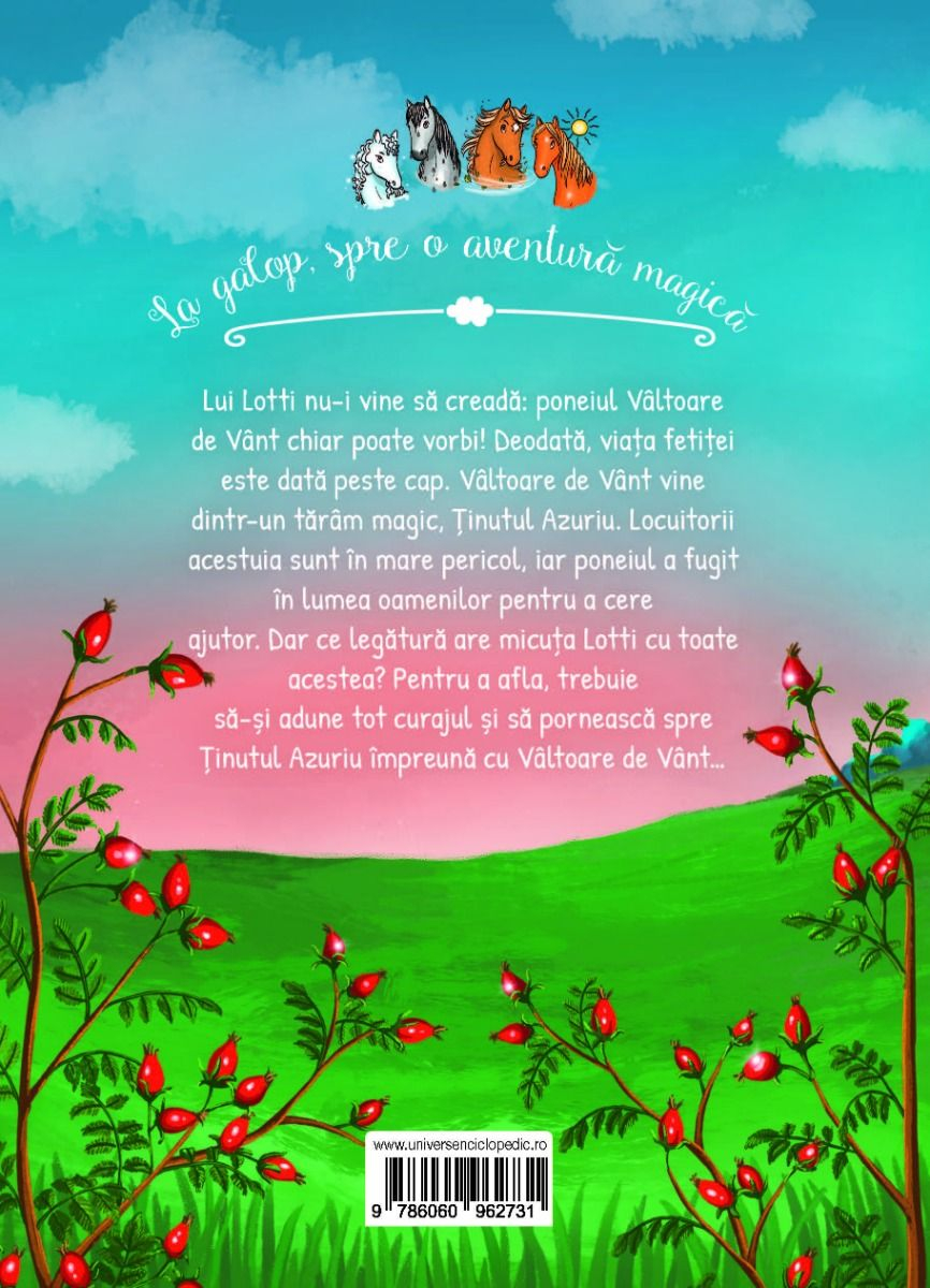Lui Lotti nu-i vine să creadă: poneiul Vâltoare de Vânt chiar poate vorbi! Deodată, viața fetiței este dată peste cap. Vâltoare de Vânt vine dintr-un tărâm magic, Ținutul Azuriu. Locuitorii acestuia sunt în mare pericol, iar poneiul a fugit în lumea oamenilor pentru a cere ajutor. Dar ce legătură are micuța Lotti cu toate acestea? Pentru a afla, trebuie să-și adune tot curajul și să pornească spre Ținutul Azuriu împreună cu Vâltoare de Vânt…