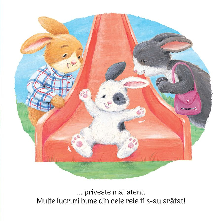 În această povestioară cu rime minunat ilustrată, personajele drăgălaşe vă arată că, orice s-ar întâmpla, întotdeauna vă aşteaptă şi ceva plăcut.