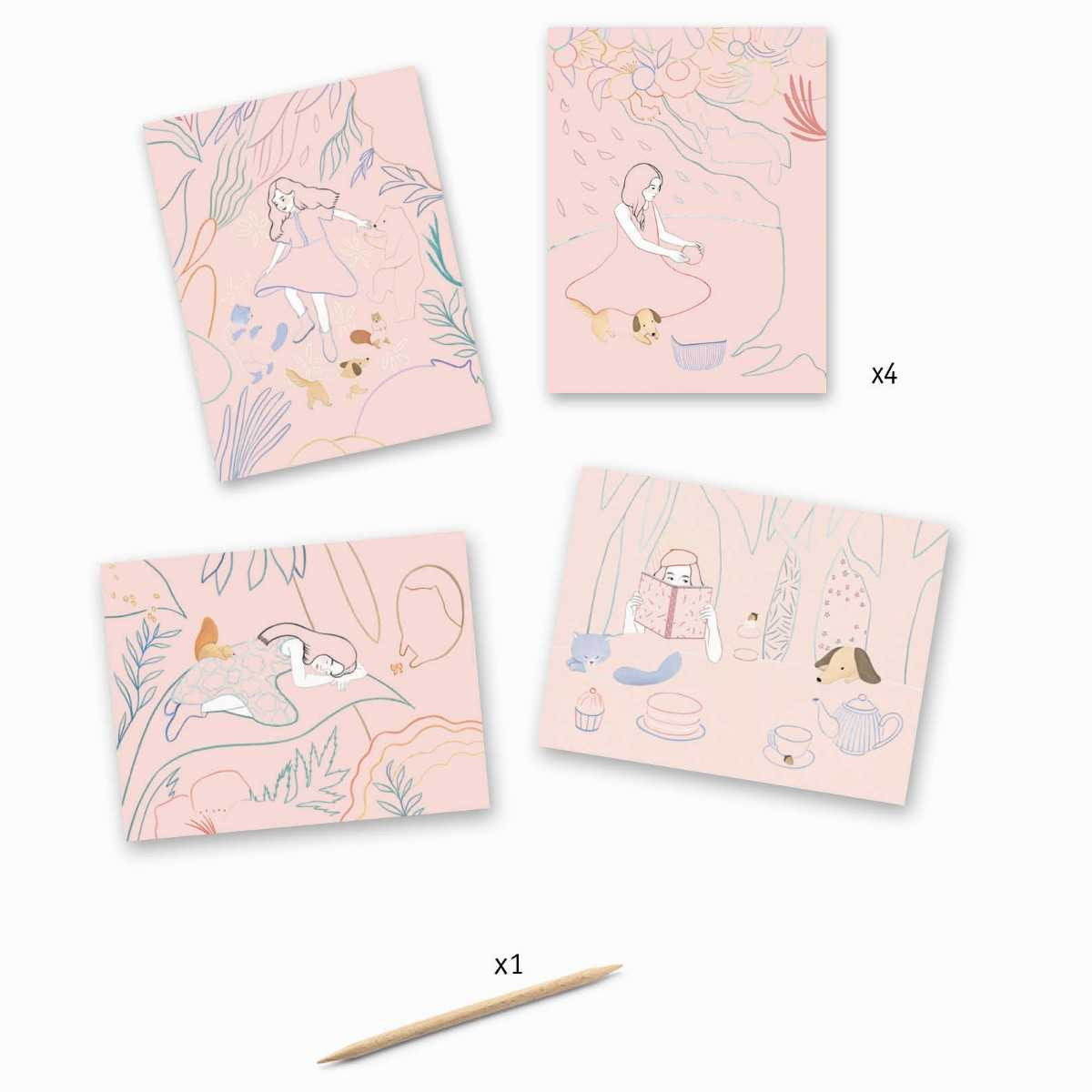 Joc creativ de razuit Picnic in natura Un set cu 4 planșe de răzuit cu tematică natură și prietenie. Copiii reproduc modelele concepute de artist zgâriind suprafața cu instrumentul din lemn. Răzuiești și obții cele mai frumoase 4 tablouri. Pentru a învăța cum să creezi modele. Conține: 4 planșe de răzuit (15 x 20 cm), instrument din lemn cu două capete, broșură cu instrucțiuni pas cu pas. Vârsta recomandată: 7-12 ani. Confecționate din materiale si culori non - toxice. Certificate FSC®. AVERTISMENT: Contraindicat copiilor sub 3 ani. A se folosi strict sub supravegherea unei persoane adulte. Producător: Djeco, Franța