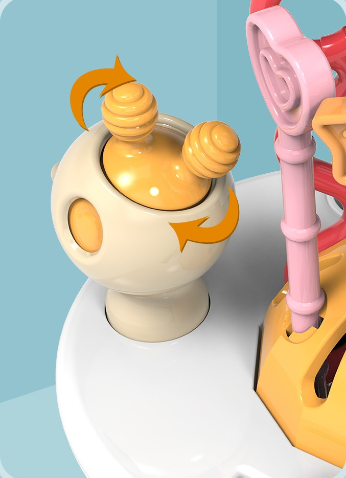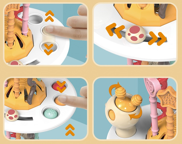 Este o jucaria cu abilitati motorii fine ce are  trei moduri de joc: tragerea in sus si in jos, convexa si concava si apasarea mingii. O varietate de moduri pentru a cultiva curiozitatea copilului despre lume, ajuta la intarirea abilitatilor motorii ale degetelor copilului.