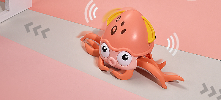 Se misca repede, lucru ce va face sa fie o mare provocare pentru ca copilul sa tina pasul cu ea. Desi caracatita se taraste repid, nu trebuie sa va faceti griji pentru peretii, mobilierul din casa  sau mana si piciorul copilului, intrucat aceasta este suficient de inteligenta pentru a le evita. De indata ce simte un obstacol, isi va schimba rapid directia si va continua sa se tarasca. De asemenea, aceasta canta si lumineaza, ceea ce  stimuleaza si simtul auzului copilului. Toate laturile jucariei sunt rotunjite, astfel incat copilul sa fie in siguranta in timp ce se joaca.