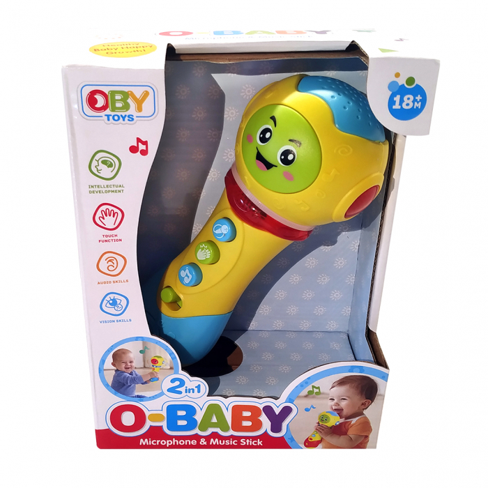 Microfon de jucarie interactiv 2 in 1, cu lumini si sunete, 4 butoane, 2 ani, Oby Toys