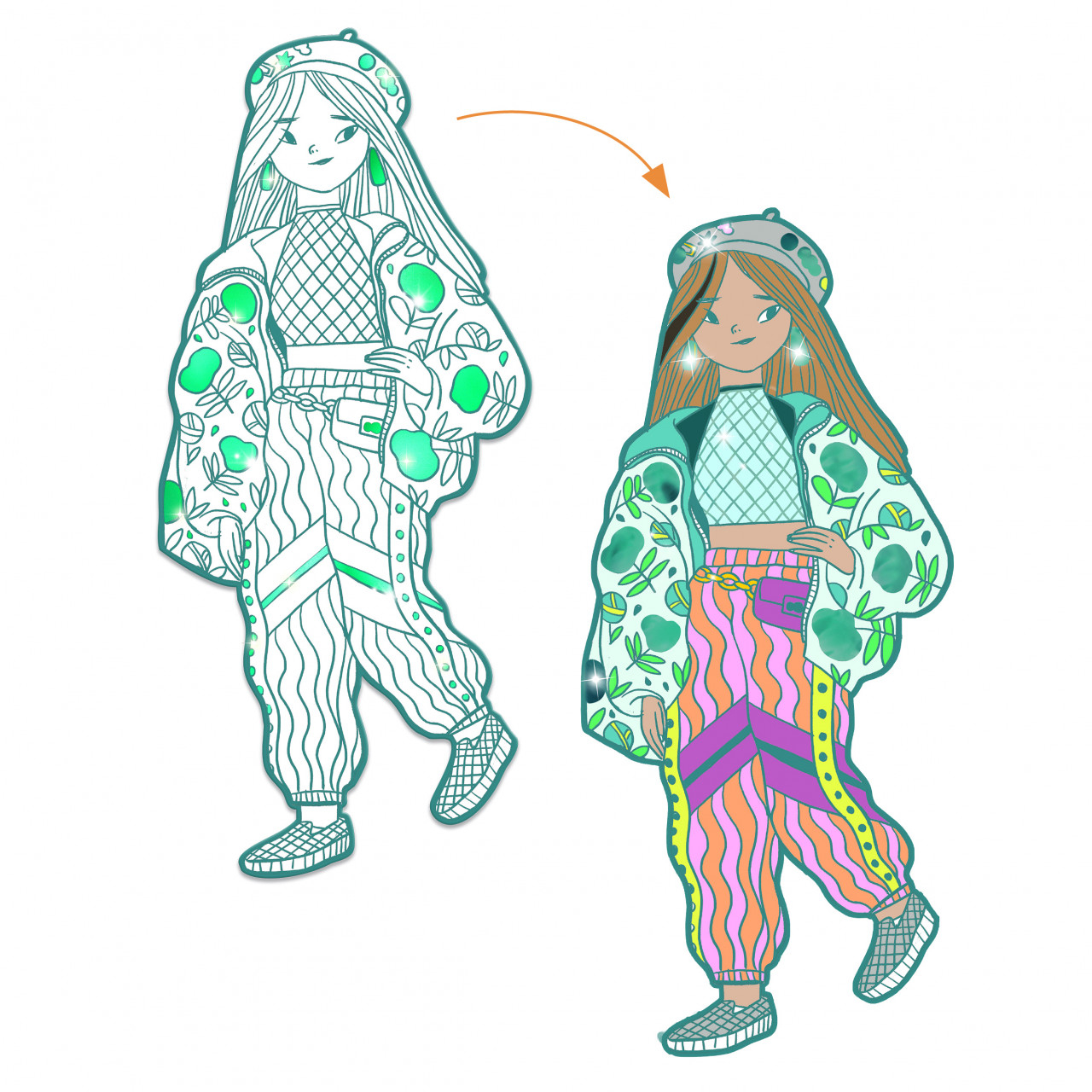 Parada modei de colorat, Angel & prietenele O paradă a modei cu ținute pe care le poți colora după cum îți place! Patru contururi mari (32 cm înălțime) oferă ținute acoperite cu modele și împodobite cu zone strălucitoare pentru a face modelele și mai atrăgătoare! Carton gros pentru a vă păstra creațiile pentru o perioadă lungă de timp. Conținut: 4 contururi de carton de colorat (32 x 18 cm), împodobite cu zone metalice. Vârsta recomandată: +6 ani. Hârtia și cartonul folosite în acest set sunt certificate FSC®. AVERTISMENT: Contraindicat copiilor sub 3 ani. Conține părți mici. Se recomandă supravegherea copilului de către un adult în timpul jocului. Producător: Djeco, Franța