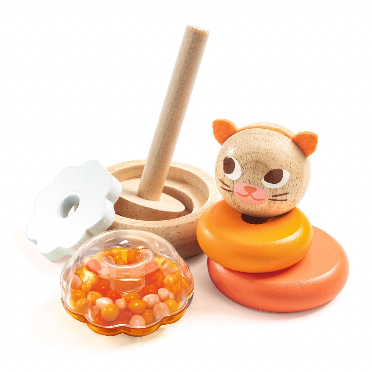Turn Montessori Stackitou Pisică Un joc de stivuire din lemn în care trebuie să reașezi o formă pisică folosind cele 4 inele. Copilul stivuiește inelele de la cel mai mare la cel mai mic și adaugă capul pisicii pentru a finaliza. O surpriză îl așteaptă sub cel mai mare inel. Inele groase ușor de prins. Inelul cu mărgele colorate este transparent, astfel încât se pot vedea și auzi mișcându-se. În timp ce se joacă, copilul învață mărimile, culorile, își dezvoltă abilități motorice fine, cognitive, coordonarea ochi-mână şi jocul independent. Jucăriile Montessori încurajează copilul să ia decizii proprii având la bază principiul auto-educării şi aplicarea celor învăţate direct. Conținut: cap de pisică, 3 inele lemn, un inel din plastic transparent cu mărgele în interior, bază, o tijă și o floare. Dimensiune piramida 8 x 13.5 x 8 cm. Vârsta recomandată: +10 luni. Confecționată din l emn de cauciuc din păduri gestionate durabil , cu vopsele non-toxice. Conform reglementărilor EN71&ASTM. AVERTISMENT: A se folosi sub directa supraveghere a unei persoane adulte. Producător: Djeco, Franța.