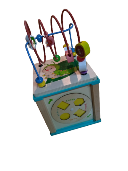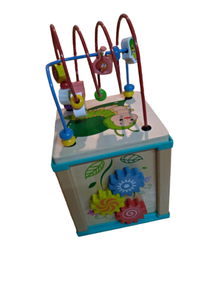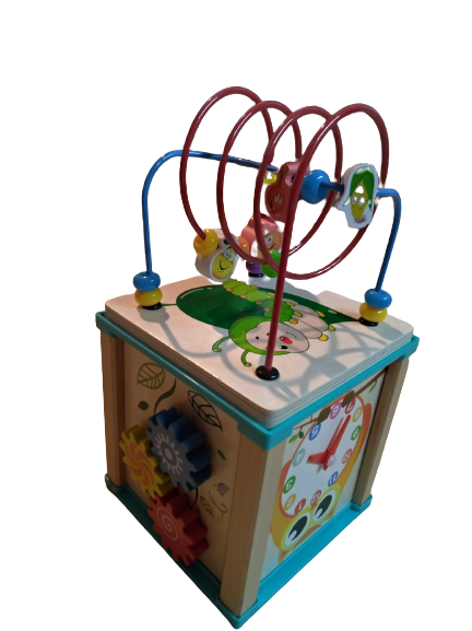 Acest cubul este o jucarie multifunctiona din lemn, educativa, pentru bebelusi, avand ilustrata cate o activitate pe fiecare latura a sa.