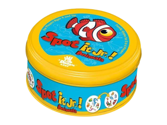 Spot It Jr Animal este un joc de carti format din 31 de carti, fiecare decorata cu 6 animale de dimensiuni diferite.