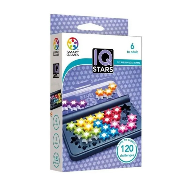 1 tabla de joc compacta cu capac transparent, 7 piese de puzzle colorate in forma de stea, 1 brosura cu 120 de provocari si solutii.
