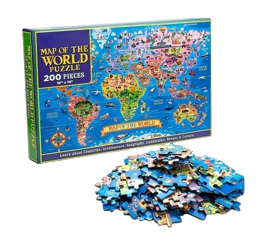 INVATA HARTA LUMII - Copiii vor intalni multe lectii de geografie timpurie cu acest puzzle distractiv si colorat, aratand granitele si steagurile statului si introducand abilitatile timpurii de citire a hartilor. Vor afla despre Tari, Arhitectura, Geografie, Atractii Turistice, Oceane, Cultura.
