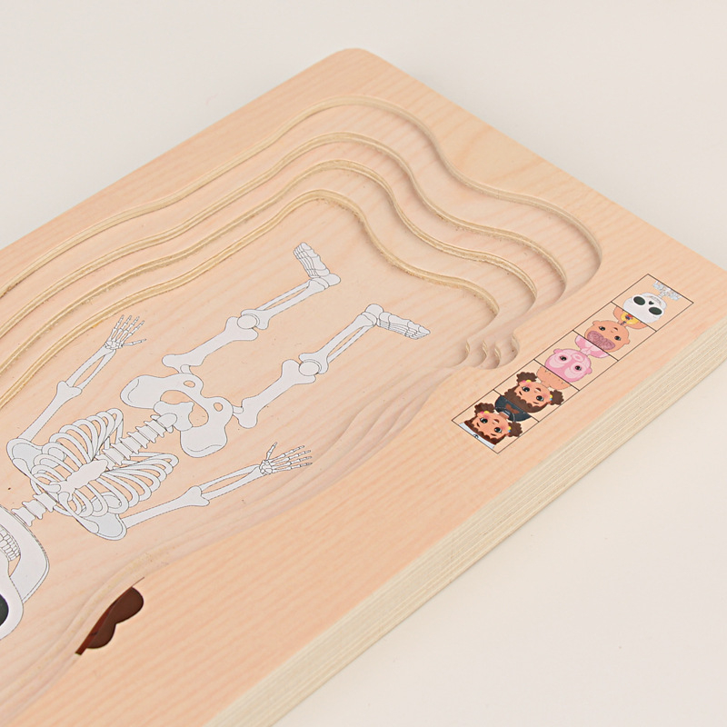 5 Straturi Educationale: Acest puzzle inovator prezinta 5 straturi care ilustreaza anatomia corpului uman: pielea, structura osoasa, organele interne si sistemul muscular. Copiii pot asambla fiecare strat in parte si apoi le pot suprapune pentru corpul uman;
