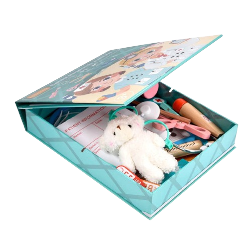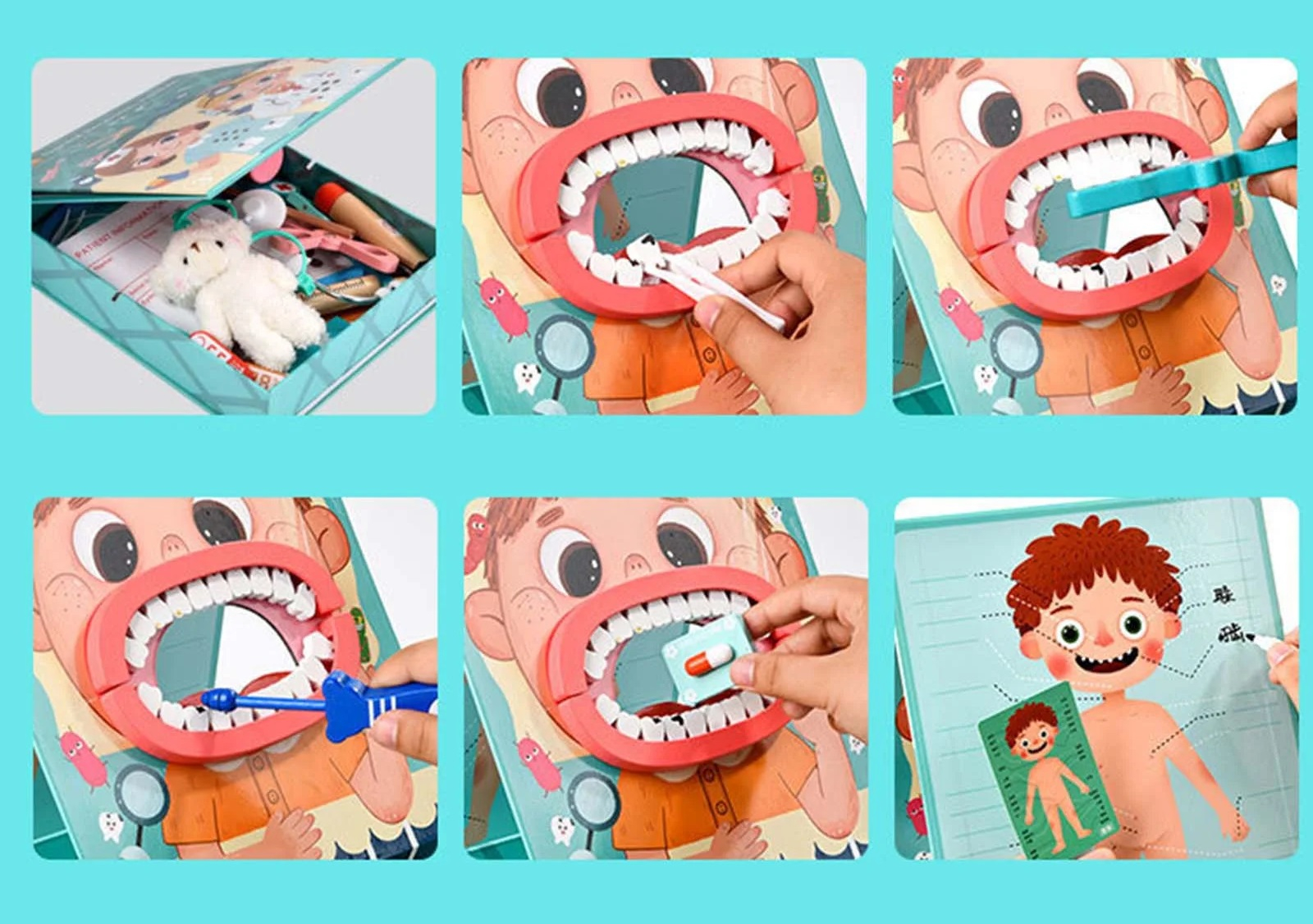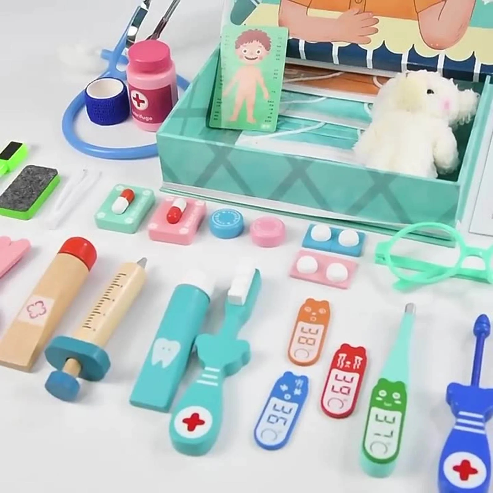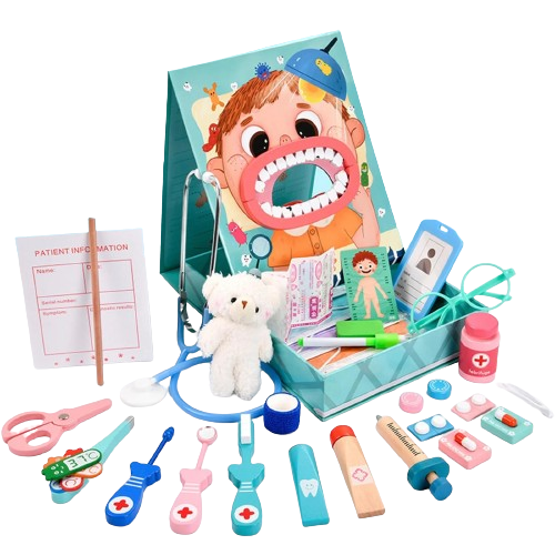 Trusa Medicala din Lemn imita un instrumentar medical utilizat in stomatologie si incurajeaza copiii sa invete despre igiena orala si sa isi dezvolte abilitatile medicale intr-un mod distractiv.