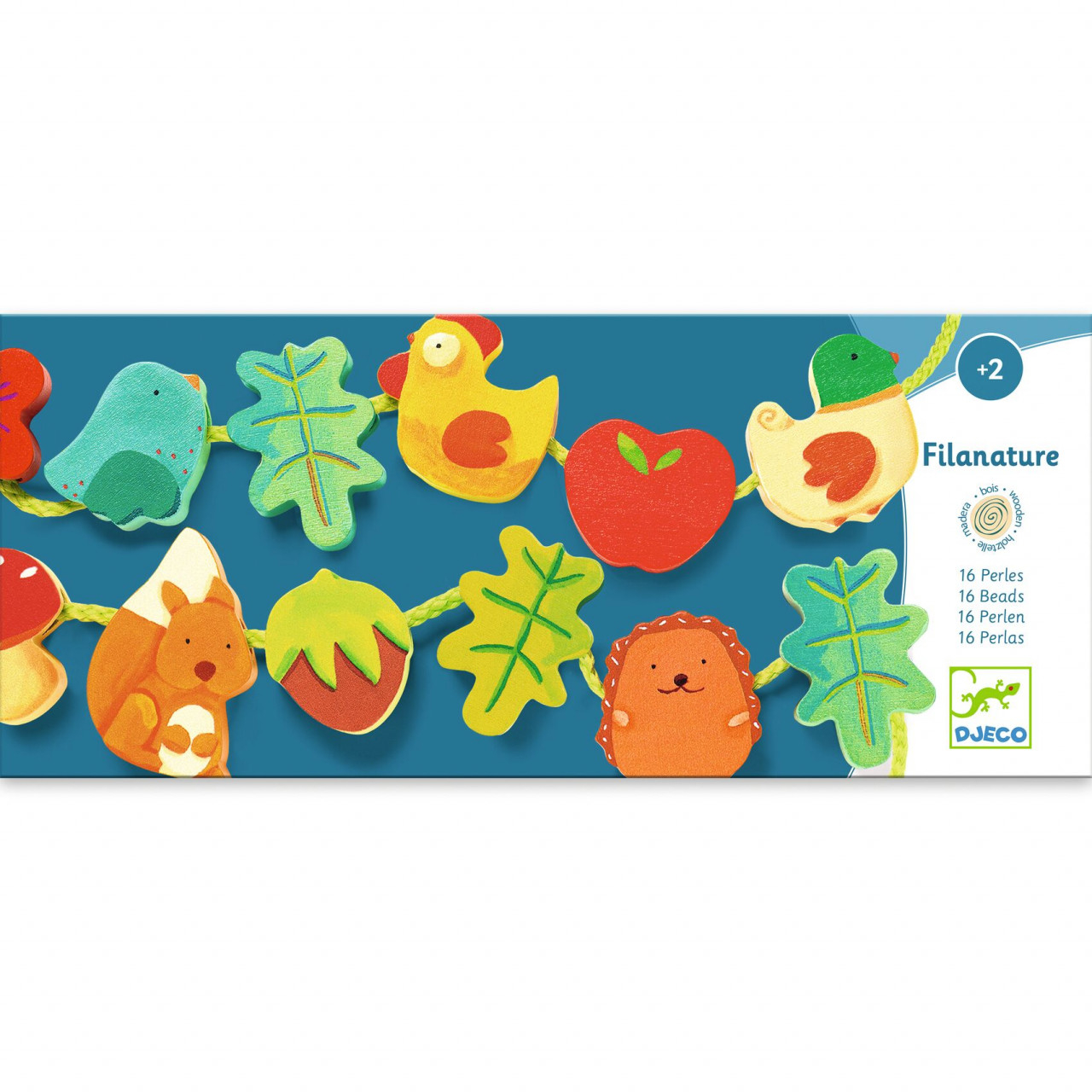 Jucarii Montessori Forme de înșirat Mărgele din lemn de forme și culori diferite cu tematica naturii: animale, frunze, fructe și legume. Copiii se distrează înfiletând mărgelele pe cele două șireturi și lasându-și imaginația să zburde. Ei învață despre animale și habitatele lor naturale în timp ce își dezvolta abilitățile motorii fine și coordonarea ochi-mână Jocul conţine 16 piese din lemn, pe care copilul le poate înşira pentru a obţine o decoraţie minunată. Vârsta recomandată: +2 ani. Confecționat din lemn cu vopsele non-toxice, conform reglementărilor EN71 & ASTM. AVERTISMENT: conţine şnur, contraindicat copiilor mai mici de 2 ani. A se utiliza sub atenta supraveghere a unui adult. Producător: Djeco, Franța
