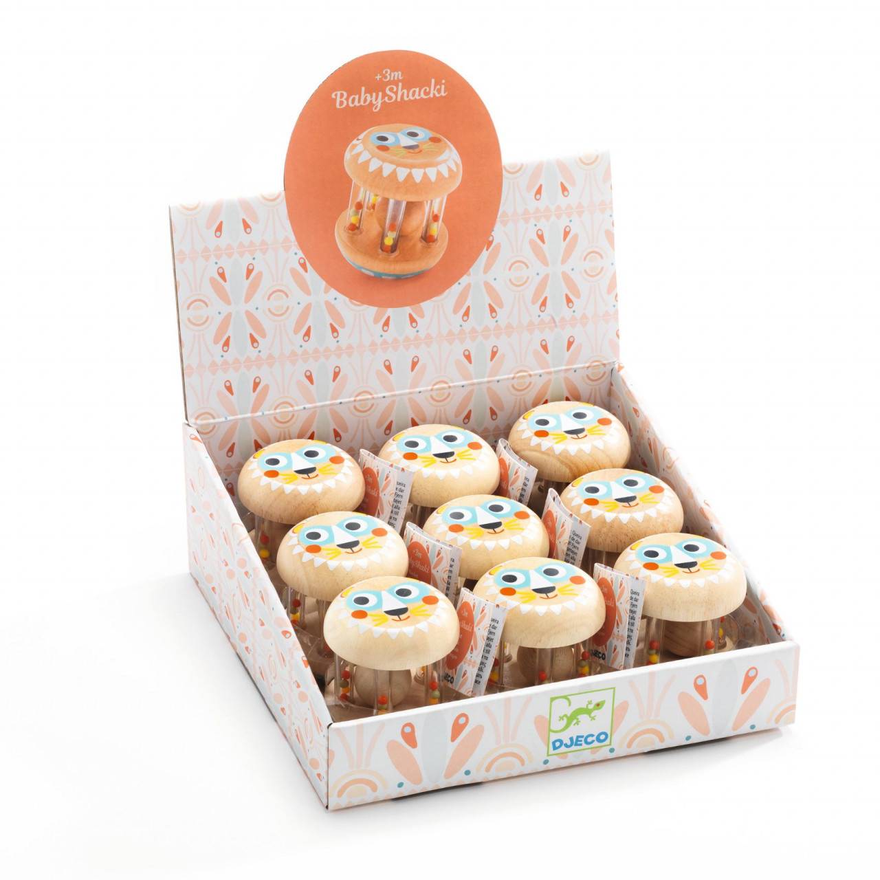 Jucarie bebe Babyshaki Să apuci e distractiv: acestă zornăitoare minunată este perfectă pentru mânuțele copilului. Bile colorate în interior, care se mișcă, şi captează uşor atenţia bebeluşului. Dimensiune produs: 5.5 x 6 x 5.5 cm. Confecționată din lemn si materiale non-toxice, cu vopsele non-toxice, conform reglementărilor EN71&ASTM. Certificare FSC. Vârsta recomandată: +3 luni. AVERTISMENT: Contraindicat copiilor sub 3 luni. A se utiliza sub directa supraveghere a unui adult. A se arunca la primul semn de defecte sau deteriorări. Producător: Djeco, Franța.