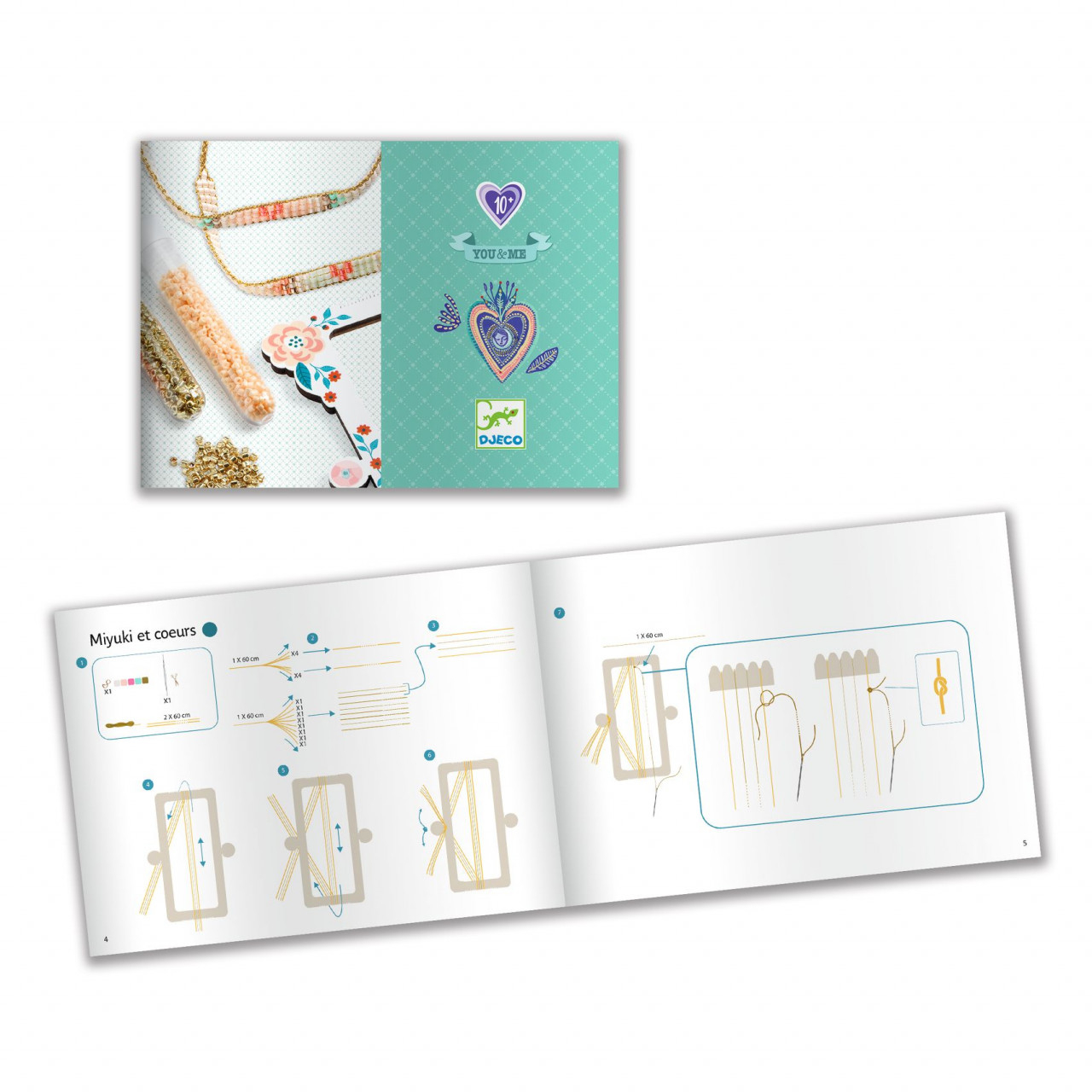 Bratari cu maregele tesute, unice, confectionate de tine În interiorul unei cutii frumos ornamentată, cu inserții metalice, se află toate materialele necesare pentru a confecționa două brățări ale prieteniei folosind un război de țesut.Copiii urmează pașii și șabloanele din broșură pentru a împleti mărgelele mici și colorate pe război de țesut. Două bijuterii de păstrat sau de oferit cadou într-o pungă drăguță din organza. Și pentru și mai multe amintiri, sunt incluse două cărți cu imagini pentru a scrie bilețele de dragoste.. Brățări de purtat și oferit pentru a pecetlui prietenia. Și pentru a personaliza si imortaliza cadoul, sunt incluse două felicitări și doi săculeți de organza. Conținut: 5 tuburi de mărgele, 2 medalioane, război de țesut, 2 elemente de fixare, fire (8m), 2 ace, manual de instrucțiuni, 2 saculeti de organza, 2 felicitări. broșură cu instrucțiuni. Vârsta recomandată: +10 ani. Atelier creativ Djeco.