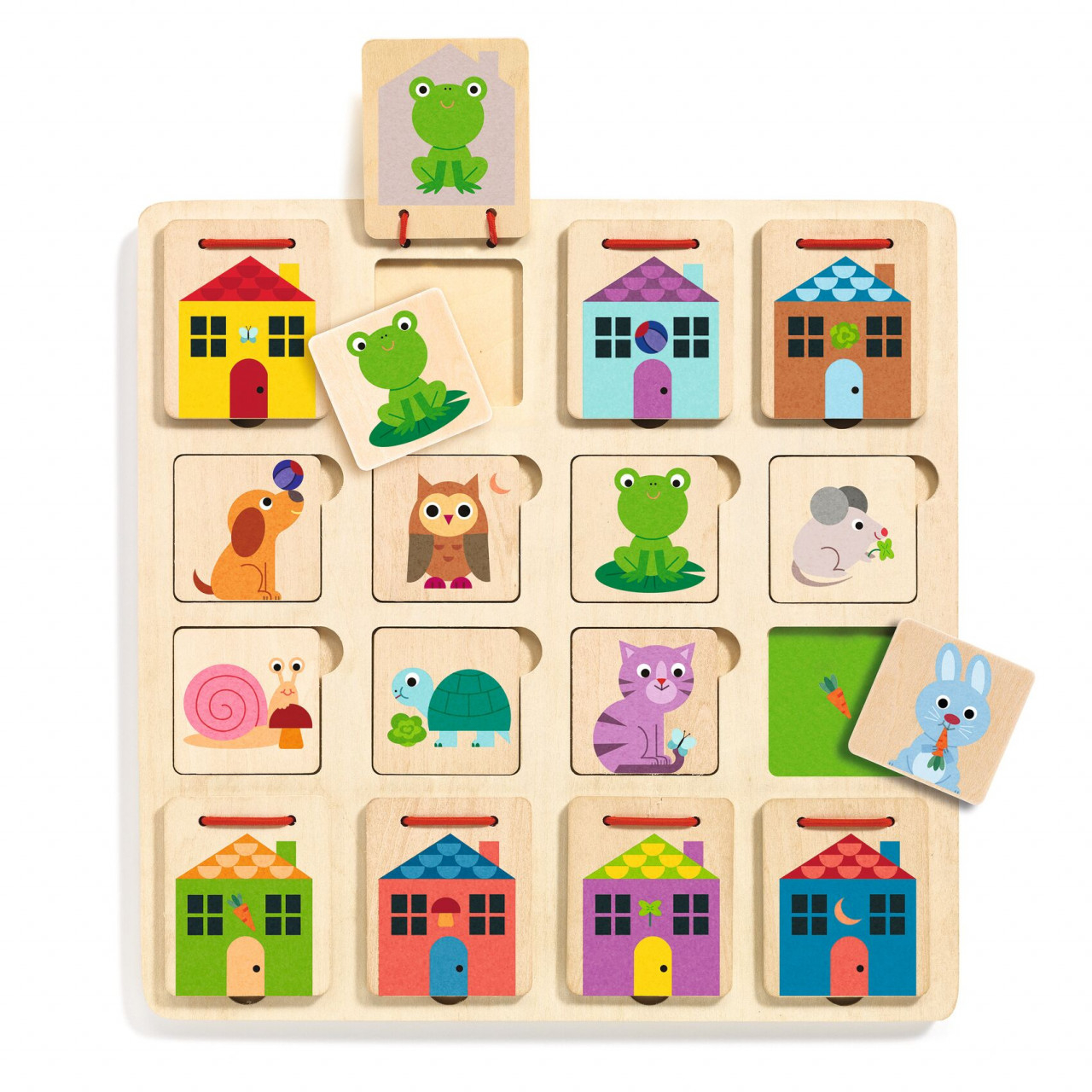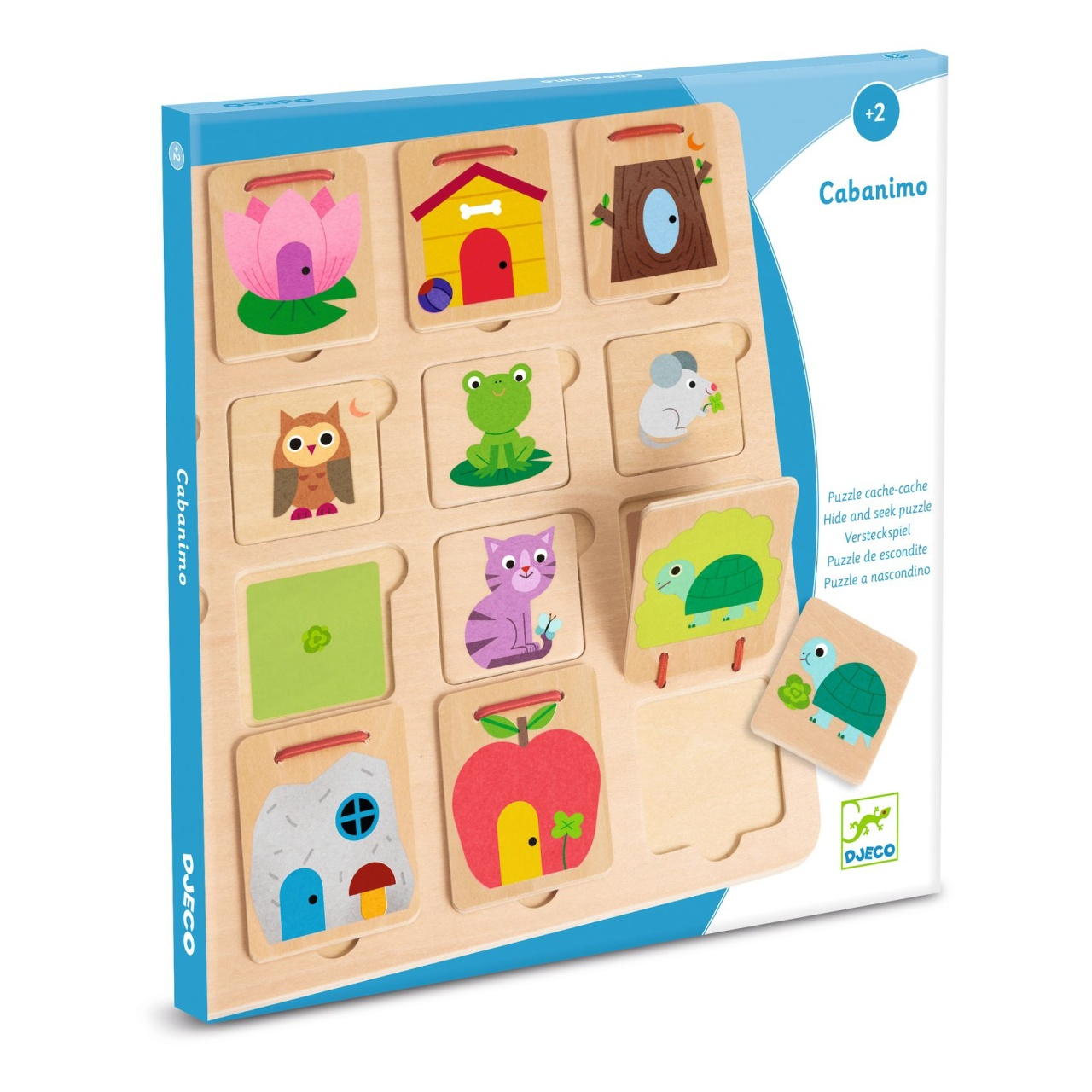 Joc de asociere Cabanimo Îndrumă-l pe puiul tău să găsească casa potrivita pentru fiecare animăluț ținând cont de indicii. Joc de-ascunselea și de observație din lemn. Copiii trebuie să pună fiecare animal înapoi în casa sa folosind indiciile. Care este casa iepurelui? Care este casa țestoasei? Un joc simpatic și sigur pentru cei mici. Vârsta recomandată: +2ani Confecționat din lemn certificat FSC®. Conform reglementărilor EN71&ASTM. AVERTISMENT: Contraindicat copiilor sub 2 ani, conține piese mici, pericol de sufocare. A se utiliza sub directa supraveghere a unui adult. Producător: Djeco, Franţa.