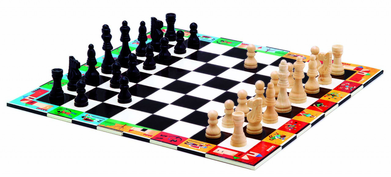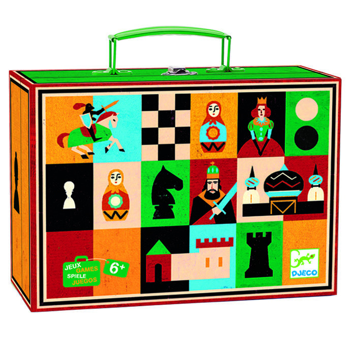 Șah și dame Două jocuri clasice, într-o gentuță atractivă și practică pentru depozitarea și transportul jocurilor. Conținut: 1 tablă de joc cu două fețe (șah și dame), 32 de piese de șah și 40 token-uri de lemn. Cutie din carton, piese de lemn, tabla de joc din carton. Reguli de joc disponibile în 10 limbi. Vârsta recomandată: 6-99 ani. Confecționat din materiale și vopsele non toxice certificate FSC®. AVERTISMENT! Contraindicat copiilor sub 3 ani. Conține părți mici. Pericol de sufocare. A se folosi sub directa supraveghere a unei persoane adulte. Producător: Djeco, Franța. Sah - descarca aici regulile jocului