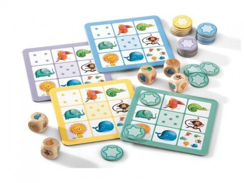 Joc de strategie Yams Celebrul joc Yahtzee (Yams) actualizat pentru cei mici. Zarurile prezintă animale care trebuie puse în grupuri din 3 aruncări pentru a forma trei familii, pătrate, și mai ales, Yahtzei ca niște adulți! Continut: 5 zaruri de lemn cu animale, 4 planse si 28 de jetoane de carton. Reguli de joc disponibile în 10 limbi. Vârsta recomandată: 4-8 ani. Confecționat din hârtie și carton certificate FSC®. AVERTISMENT: Contraindicat copiilor sub 3 ani. A se utiliza sub directa supraveghere a unui adult. Producător: Djeco, Franța. Yams - descarca aici regulile jocului