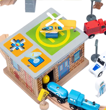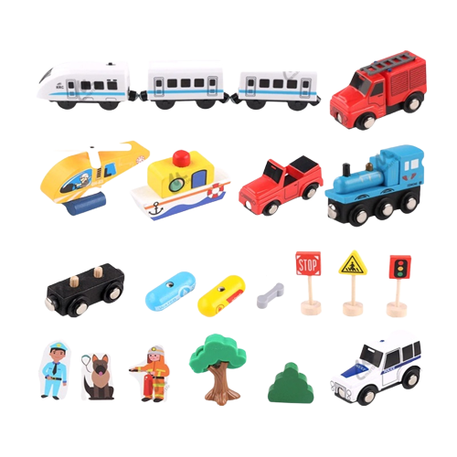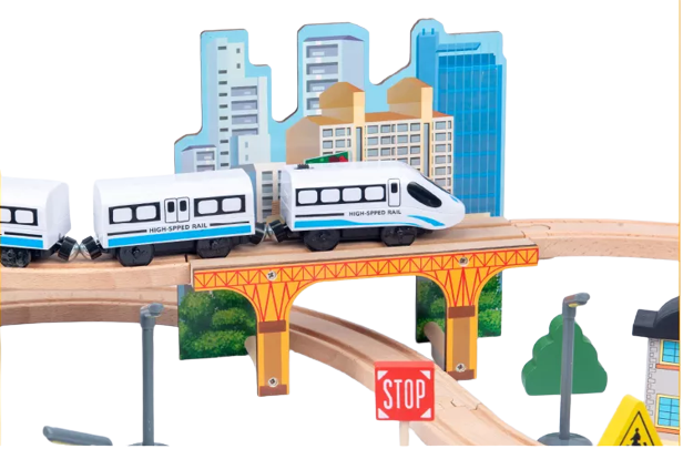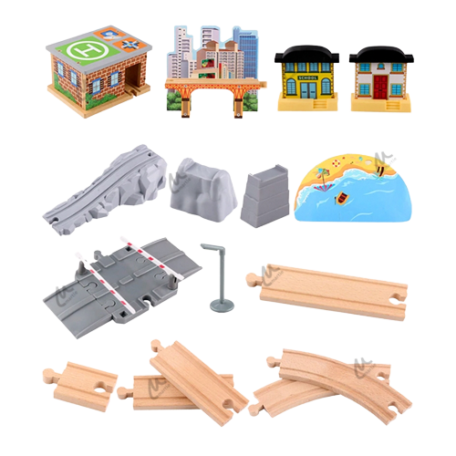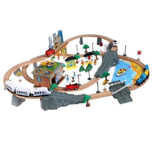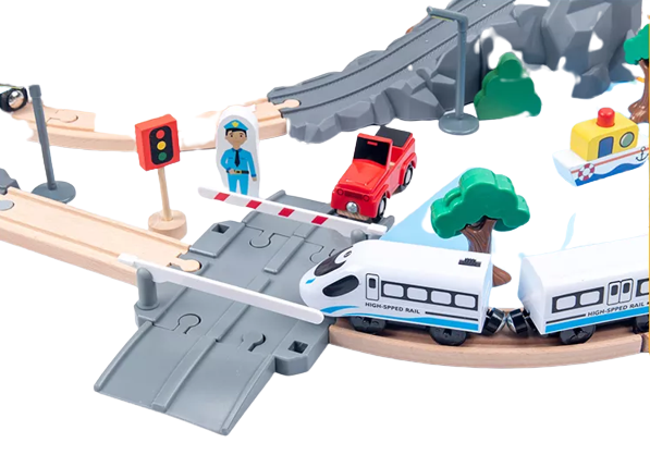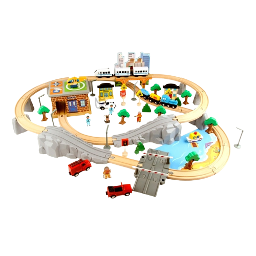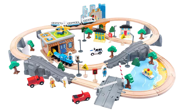 Este format din mai multe piese interesante, cum ar fi vehicule, indicatoare rutiere, copaci, bariere si un pod. Datorita numarului mare de accesorii, este un joc foarte realist, trenul trenul merge cu viteza, trecand pe langa bariere, copaci, cladiri si alte vehicule.